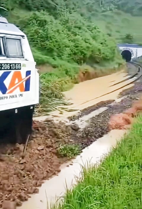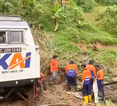 BANDUNG BARAT, – Longsor menimpa Kereta Api (KA) Ciremai di sekitar Terowongan Sasaksaat, Kabupaten Bandung Barat, menyebabkan jalur kereta api lintas Bandung-Jakarta lumpuh total, Rabu (1/4).