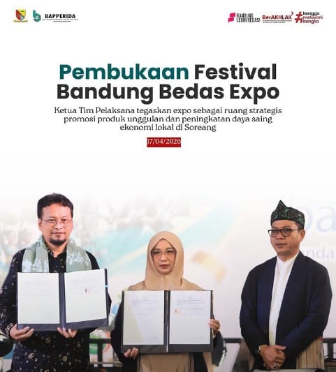 BANDUNG – Pemerintah Kabupaten Bandung resmi membuka Bandung Bedas Expo 2026 di area expo setempat, Jumat (17/4). Gelaran dalam rangka Hari Jadi ke-385 Kabupaten Bandung ini menjadi strategi mendorong UMKM dan produk kerajinan lokal menembus pasar yang lebih luas.